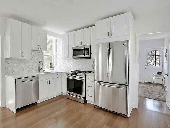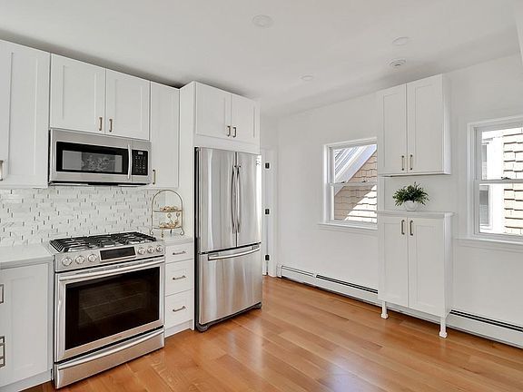 Stunning tall & airy top floor 2BR/1Bth with fantastic designer touches! First class renovation condo located 2 BLOCKS from NEW GREEN LINE, Gillman Sq. (next door to Sarma restaurant)! Sunsplashed beautiful 5-window living room leads to dining area & smoothly transitions to most gorgeous & tasteful kitchen you can ever imagine! White shaker style cabinets, superb quality quartz countertop & unique backsplash w/touch of gold creating warm luxurious kitchen atmosphere you'll never want to leave. New Samsung stainless steel high-end appliances including recessed lights & plenty of cabinet space. Perfect open living area, ideal for entertaining. Comfortable 2-bedroom layout. High quality 5-inch plank hardwood flooring, beautiful new bathroom, high ceilings. In-unit ventless Bosch WASHER&DRYER. Awesome custom lighting! Spacious PRIVATE BALCONY tops it off to enjoy warm summer evenings. Dedicated STORAGE area in basement. Convenient traveling to: Rt. 93, Rt. 28 & multiple bus choices.