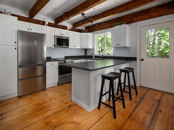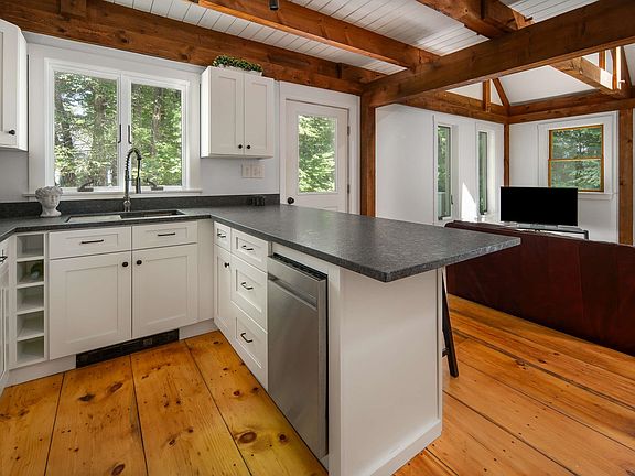 Tucked away in a tranquil wooded setting on .69 acres, this recently renovated 3 bedroom, 2 bath Maine Post & Beam cape exudes charm and character. This home was built in 1983 and has seen numerous upgrades and additions. The current owners have elevated its appeal with a comprehensive transformation, including a new roof, beautifully refinishing the wide pine floors, adding a first-floor bedroom, updating the first-floor bath, and remodeling the kitchen to feature striking leathered granite countertops and updated fixtures. The updates continue to the second floor to the spacious primary bedroom, the stunning, new full bath with tiled shower and the versatile 3rd bedroom/loft area that could easily double as a home office. The center of the living space boasts a vaulted ceiling adorned with exposed beams and a new skylight, giving the home an inviting ambiance. The recessed living room with a woodstove adds a cozy touch and opens onto the side deck, perfect for leisurely outdoor gatherings and grilling. The dining room and first floor bedroom each have sliders to the yard, filling the rooms with natural light. Completing the property is a two-story outbuilding that holds potential for conversion into an accessory dwelling unit, subject to town approvals. Ideally situated in Cape Neddick, between York and Ogunquit, this home offers seamless access to Rte 1 and I-95, as well as to beaches, shops, and restaurants, making it a delightful haven for coastal living.