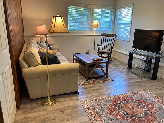 New Construction completed in 2023 Full Kitchen with large Living Room. All Appliances including Washer and Dryer. Nicely furnished with two bedrooms, one bathroom. Light filled great room, large dining table and fully equipped kitchen area. Outdoor patio area with umbrella covered seating for four. Adequate parking near front door. New smart TV in great room. One year lease with application and credit check. Owner pays utilities: Electric, water, Internet , TV. Occasional visitors allowed. Regular Occupancy by Tenants only. No Subletting . No Smoking on Property.