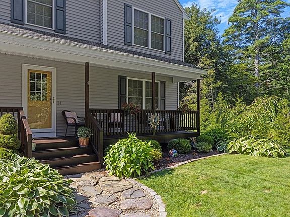 Like new home walking distance to desirable Halfmoon Lake, home has been immaculately maintained and shows the care taken. Enter thru foyer to hallway with half bath, open kitchen with walkin pantry, electric range, refrigerator, microwave and dishwasher, granite counters and open concept to diningroom with sliders to back deck; back yard is level and wooded for evening fires in patio area fire pit. Large livingroom with access to full farmers porch along front overlooking lush landscaped yard. Upstairs primary bedroom with walkin closet and full tiled bath shower along with another bedroom and office and another full bath. Full basement with 2 washers, open and walkup to passthru door to get to sideyard, also a 2 car garage with builtins, shelves, utility sink and refrig... Locke Lake Colony has rights to two Lakes , Locke Lake and Halfmoon Lake which is .2 miles to large beach area; tennis, golf, and pools, with rec hall. Imagine your summer and winter enjoyment or rental potential with lakes and Gunstock for winter skiing just 30 min away.