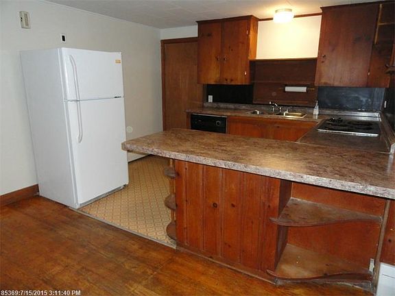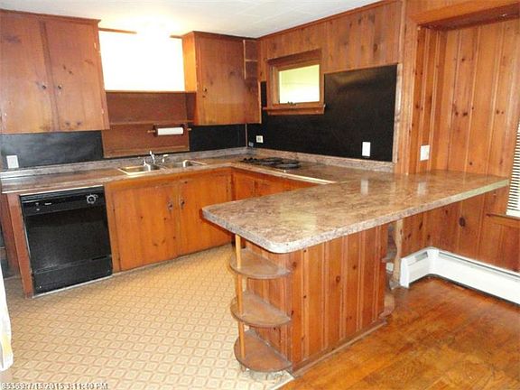 Private wooded backyard with dramatic ledges in-town Bar Harbor. Three bedroom home featuring open floor plan, wood floors, cedar closets and attached garage. Unfinished room could be converted to extra living space.