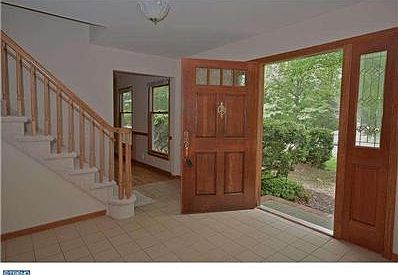 Experience the many delights of this center-hall residence. Fine features include both a formal dining room with chair rail molding and a spacious formal living room with built-ins. Updated kitchen with Corian countertop recessed lights pantry tile backsplash stainless steel appliances and separate desk area will make everyday cooking an enjoyable event. Sunny breakfast room has bay window that overlooks a beautiful view of your own park-like setting rear yard. Style and elegance enhanced by a freshly painted interior in a warm earth-tone color new carpeting new designer lighting and shiny hardwood floors. Impressive wood front door invites your guests to large but comfortable rooms. Family room has a beautiful brick surround wood-burning fireplace. The first floor office could be used as a fifth bedroom. Step outside and relax on your very own multi-level deck with built-in seating made from IPE wood otherwise known as iron wood. The benevolence of shade and shadow is provided by the mature trees. Also consider the main-level laundry two-car garage and full basement. A thrilling discovery geared to comfortable living and enjoyment. One year home warranty offered to buyer at closing.
