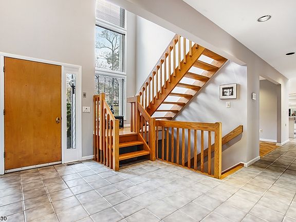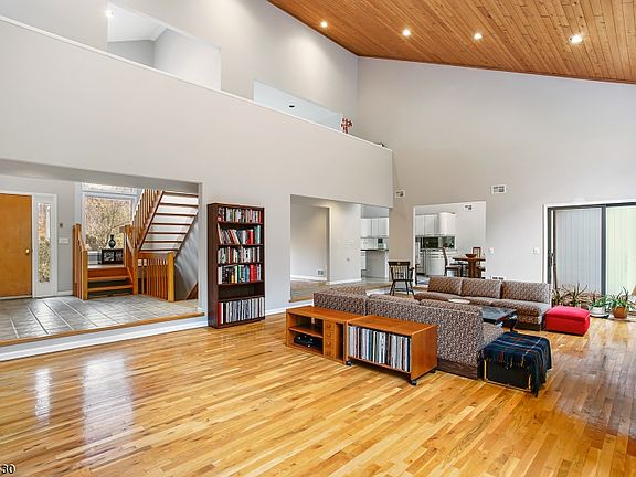 Set back on a huge private level lot, circular driveway w/ 3 car garage Contemporary home located in the overlook section of Warren. Spacious and airy family/living room flows to kitchen with ample windows, wood burning fireplace, sliding door opens to a large deck overlooking beautiful yard. Spacious Eat in Kitchen w/ Center Island, Skylight, sliding door to deck. Large Master Bedroom Suite with updated bath, walk in closet, sitting room and sliding door to deck. Hardwood floor throughout 1st floor. The second floor bridge has the perfect Birds eye view of the great room. A Den, 3 large size bedrooms and a full bath completes the second floor. Close distance to East County Park with Nature and running park. Close to schools and highways.