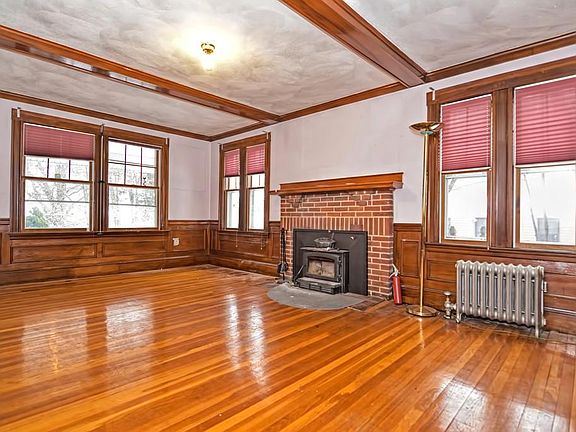 Appealing home beautifully sited on a quiet, tree-lined street in a coveted location that allows for easy access to major routes & is also close to Sq., Fells, buses & more. Generous space awaits & although in need of some updates, you???ll find this home filled with a host of fine, distinctive features that add character & charm throughout, including abundant natural woodwork, wainscoting, moldings, hardwood floors & more. Gracious living room offers wood-burning stove for additional winter warmth, rich wood accents & beamed ceiling. Formal dining room boasts beautiful built-in china cabinet with drawers & chair rail. Oversized eat-in kitchen, sunlit & bright, has ample counter space, cabinets extended to ceiling, plus a large dining area & doors to deck overlooking rear yard. Added bonus of 1st floor bedroom & full bath. Upstairs 3 bedrooms, small bonus room & 2nd full bath await. Excellent expansion potential in basement with walkout. Lovely lot, garage & driveway add to the list.