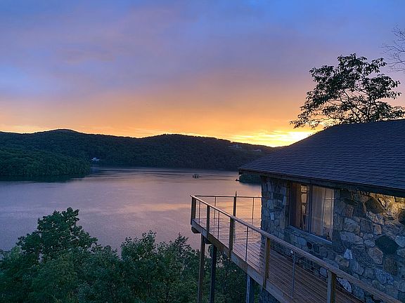 300' DIRECT WATERFRONT - Candlewood Lake Estates - Where Eagles Soar! To say these are perhaps one of the best VIEWS on CANDLEWOOD LAKE is a true understatement. Year Round Panoramic VIEWS up, down and across the Lake plus Vivid Western Sunsets! Absolutely Privacy in this Treetops Getaway w/water's edge DOCK. A real Cream Puff Cottage/Chalet w/wrap around Deck and stunning stonework. 1940's Charm, totally updated and renovated w/modern conveniences and contemporary flair. Open Floor Plan boasts the entire front of the house w/it's wall of windows to capture the View. Vaulted Ceiling, Massive Stone Fireplace open to Dining Area & upscale Kitchen. The Master Bedroom feature stone wall, walk in closet and private master Bath. Adorable secondary bedroom w/full Bath. Clean dry utility and storage basement. Updates include NEW SEPTIC. Candlewood Lake Estates - in addition to having your own direct Waterfront this private gated lake community also offers access to 2 additional community beaches on Candlewood Lake and access to 2 beaches on desirable Emerald Lake/Green Pond - an absolutely magical spot where you can swim, canoe, kayak that and your guitar and a bottle of wine makes for very special relaxing moments. 90 min to NY. NEW SURVEY