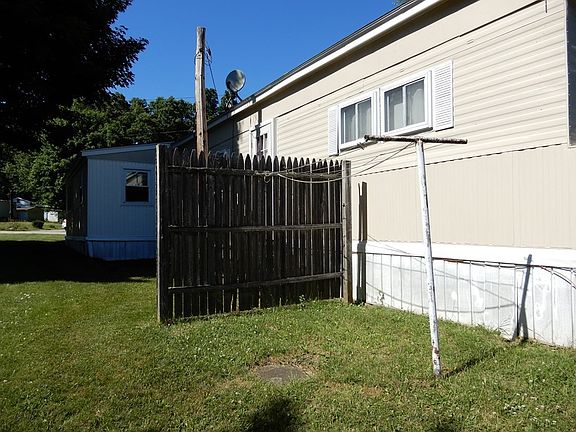 Welcome to Wagon Wheel Family Park! Beautiful New Yorker 2 bedroom mobile home with addition!! Bright and cheery recently painted inside and out! A lovely open floor plan with a huge living room with gas stove for those chilly nights. Both kitchen and dining area packed with cabinets for extra storage! Peninsula for additional dining area and gas stove! 2 bedrooms both with ceiling fans and main bedroom has built ins for more storage! Bathroom has walk in shower for easy access. Sellers have done many updates over the last 5 years they have lived here. All brand new pipes insulated with heat tape and new hot water heater. New flooring and rugs installed in 2021. Windows have been updated with storms and 2 year old shades will stay with home. Gorgeous yard to sit out and handicap ramp for easy access. . Enclosed oil tank, shed and so much more!! Park share of $16,500 included in price. Association fee includes water, sewer, trash, taxes and road maintenance. So affordable!!