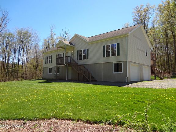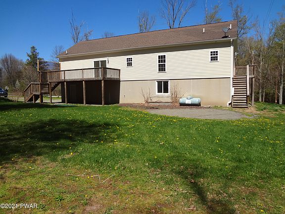 NO COMMUNITY! SHORT DRIVE TO BEAUTIFUL LAKE WALLENPAUPACK! Large 3 Bedroom, 2 Full Bath Ranch on a Full Unfinished Basement for Future Expansion! This home features a Master Suite with Walk-In Closet, Huge Living Room, Dining Room, Eat-In-Kitchen with Breakfast Room, Basement and 2-Car Garage. Enjoy the outdoor space on the beautiful 2 Acre Parcel. Large Back Deck and Front Porch. Conveniently located close to I-84 for easy commute from the cities! Close to Lake Wallenpaupack, Promised Land State Park, casinos, shopping and restaurants. Come take a look today!
