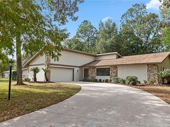 A fully updated Sugarmill Woods Gem! This home sits deep on a beautiful lot that allows for an extended winding driveway. The driveway leads to an oversize garage with a walk-out door. You will notice the home has just been fully repainted inside and out. A high-end renovation was just finished to make this home better than new. We have all new mechanicals including HVAC, water-tank, and electric panel. Roof with 30 yr shingles was done in 2010. The renovation included a new kitchen featuring Quartz countertops, new LVP tile throughout the home, new ceramic tile on the oversized lanai, and all-new fixtures, fans, etc., etc. This is not your average home, the lot, the extra touches such as the oversize garage, driveway, and lanai make it a real gem and one the new owner can enjoy for years to come thanks to the full custom professional renovation.