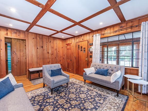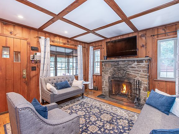 Peace, privacy and tranquility await in this meticulously maintained log cabin style ranch, located in the sought-after Knights Bridge neighborhood of eastern Randolph! Fully enclosed 3 season entry porch leads to light and bright, cozy living room with stone, wood burning fireplace, hardwood floors and genuine knotty pine throughout. Eat-in kitchen with ample cabinets and counter-space. 2 bedrooms and 1 full bath complete the main floor. Forced hot air, public sewer, and additional attic space! Large, dry, walk-out basement with 10ft ceiling, interior and exterior entrances, and endless possibilities! Level, wooded lot in the original Musiker Acres, built in 1951 by Morris Zudick. Adorable home in a quiet, safe, convenient neighborhood located just 5 minutes from Mendham, and 10 minutes from Morristown!