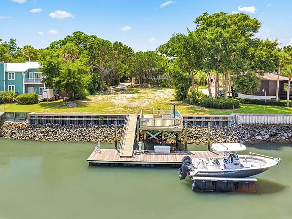 Amazing Deepwater Opportunity!! One of a Kind Property with Direct Access to the Intracoastal Waterway and with Beautiful Sunset Views! Short Walk to the Beach! High and Dry Protected from the Elements-Cleared, Graded, and Ready to Build! Bordered by Mature Cedars and Oaks on Both Sides for Privacy!50' Floater and Spacious Upper Deck Fully Equipped with Power/Water and Perfect for Entertaining! About 7' or a Little Deeper at the Dock at Low Tide! Swim, Fish, Boat, and Enjoy Wildlife ( Regular Visits from Dolphins and Manatees!) Year Round in the Deep Tabby/Driftwood Canal! Brand New State of the Art Seawall! Architectural Plans Included! Sale also Includes 1/10th Ownership of 30 Acres on Goat Island ( Dredge Spoil Site ) !