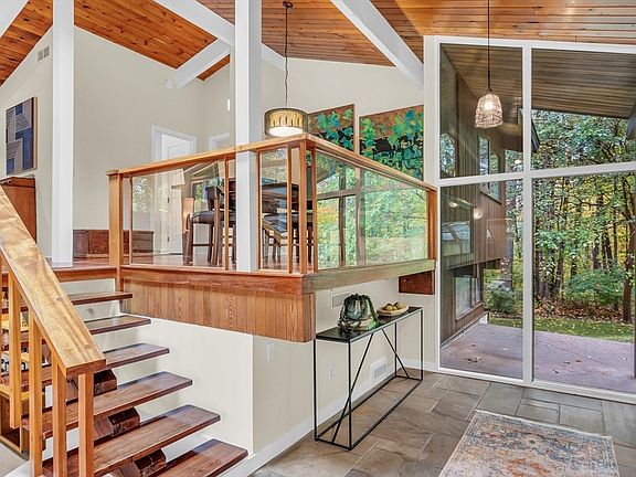 Nestled on a tranquil corner lot this stunning tri-level home offers a perfect blend of modern design, natural beauty & peaceful seclusion. Boasting soaring beamed ceilings & vast windows, this property provides bright, open-concept living spaces that bathe the interior in natural light. At the heart of this special home is a sizeable kitchen opening to a cheerful multi functional sun room & spacious fireplaced living room & dining areas. A luxurious primary bedroom retreat features a full bath & balcony providing the perfect spot to enjoy morning coffee while overlooking the lush wooded surroundings. On the lower level you’ll discover a cozy family room w/custom built ins & 2 spacious bedrooms sharing a full bath. Each level of this home is thoughtfully designed offering a seamless connection to the outdoors. Enjoy a desirable location minutes from Harvard town center, top ranked schools, beach & a rare opportunity to own a contemporary masterpiece immersed in the beauty of nature.