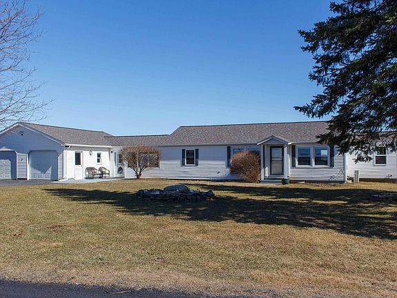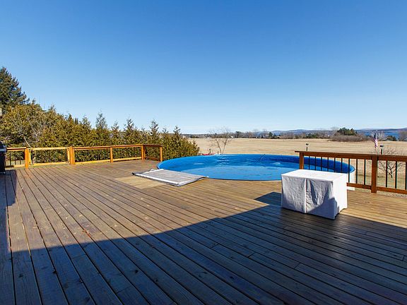 Perched on top of a hill sits this updated ranch-style home with outstanding views of the Green Mountains and Lake Champlain. The property consists of 1.29 acres with cedar hedges and trees lining the property providing privacy. The massive back deck features an above-ground pool with views of the backyard, mountains, and lake. Inside is an open main living area that is bright and airy with vaulted ceilings and natural light. The kitchen has stainless steel appliances and a walk-in pantry for extra storage. The sitting room off of the kitchen has a cozy wood stove. Your favorite room will be the sunroom with vaulted ceilings and windows with stunning sunrise views. Down the hall are two bedrooms and a full bathroom. The primary bedroom has an en suite 3/4 bathroom. The finished walk-out basement offers even more living space with a large open room, workout room, laundry room, and storage space. Additionally, there is a 2 car garage with storage above and garden space. There is public lake access just around the corner at the end of Folsom Harbor Road. Come see what this well-kept Grand Isle home has to offer!