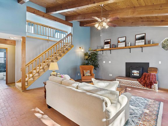 Welcome to this charming mountain retreat in Tijeras. This home features numerous updates including a new roof in 2019, remodeled bathrooms, new vinyl windows and a newer pellet stove. Other features include brick floors, wood ceilings, and a wonderful open floor plan. Relax on the front porch, or the master bedroom deck. Large shed is perfect for all the extra things you need to store. This home has been well cared for and is super clean, come see it today!
