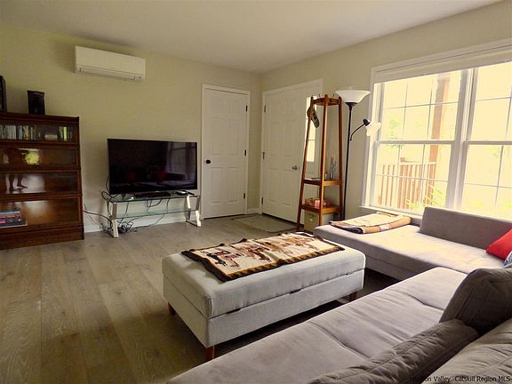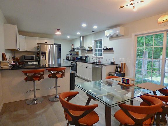 Don't worry about closing the blinds in this move-in ready ranch; there are no neighbors in view, and only 3 other parcels down the private, no-outlet road! The location is central to all this wonderful area offers: the parks, preserves, rail trails, farms and villages of the Rondout Valley and the Shawangunks. Minnewaska State Park is 10 minutes away, the O&W Rail Trail is 1.5 miles up the road, and Accord's Main Street is just beyond with the brand-new Accord Market. Drive just 12 minutes to High Falls or Stone Ridge. The home feels almost new thanks to the many updates. The spacious kitchen features long beautiful steel gray granite countertops and brand new cabinets. The dining area connects the kitchen and living room and has access to the deck in the mostly private backyard. At one end of the house is the master suite, and on the other are 2 bedrooms and a second full bath. Both bathrooms were tastefully redone with ceramic tile and stylish vanities. There are lovely wide-plank oak floors and fresh paint throughout. Four ductless mini splits supplement the central heat for efficient room-by-room heating and all-important air conditioning. Move right in and enjoy all the seasons here in comfort!