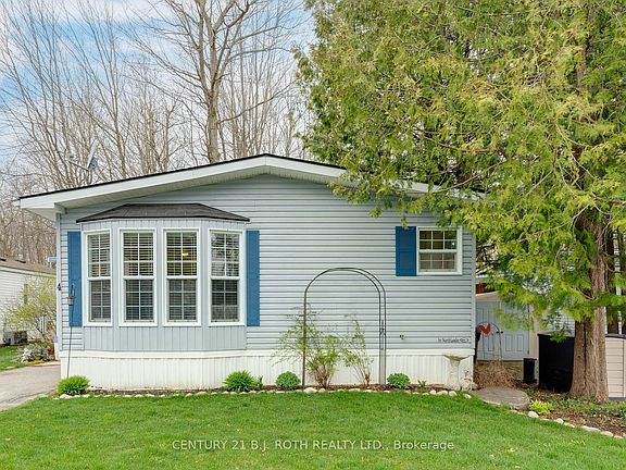Welcome Home! This beautiful two-bedroom bungalow features an open concept design, where the heart of the home truly shines. Step into the spacious kitchen, perfect for culinary adventures, with ample counter space and modern appliances. The sun-filled living room provides a bright and inviting atmosphere to relax and gather with friends and family, while creating lasting memories. Enjoy timeless moments in the privacy of your three-season sunroom, where nature abounds. Recent updates include new on-trend laminate flooring, kitchen counters and backsplash. The low monthly fee of $773.91 includes land lease rent and apportioned property taxes. Take a walk on the nearby trails or visit the beach just a few minutes away. Clubhouse amenities include a heated salt-water pool, sauna, library, billiards room, exercise room, woodworking shop, and main hall. Meet new friends and enjoy social activities including cards, games, darts, shuffleboard, horseshoes, bingo, dances, exercise classes, and more! Make this your new home in this friendly year-round adult-living community.