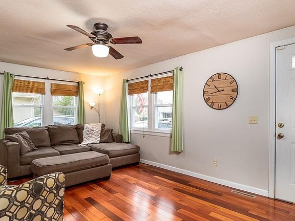Affordable way to live in East Longmeadow. A really pretty move in ready 3 bedroom classic cape cod style home. Gorgeous hardwood floors are a favorite feature throughout the 1st floor. The kitchen is eat in and really easy to work in. The bathroom is pretty & spacious. The second floor is one large room with lots of storage, cozy carpeted floors and is a wonderful private retreat. The backyard offers a deck, storage shed and firepit. The mostly fenced yard backs up to a pretty woodland and also has a lovely stone wall. Newer roof, siding and windows (2010) FHA / VA friendly property.