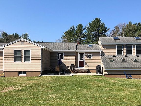 This is the location you have been waiting for! Spacious Ranch with great room expansion, privately situated on a lovely corner lot. Fireplace formal living room, oversized dining room, and additional breakfast room. Master bedroom with half bath. Multiple skylights and hardwood floors throughout. Finished basement with built-ins and garage/storage. Workshop/office with vaulted ceilings, skylights, separate entrance and loads of potential! Title V approved. All stainless steel appliances. Call 978-375-4878 for more information or to get a closer look.