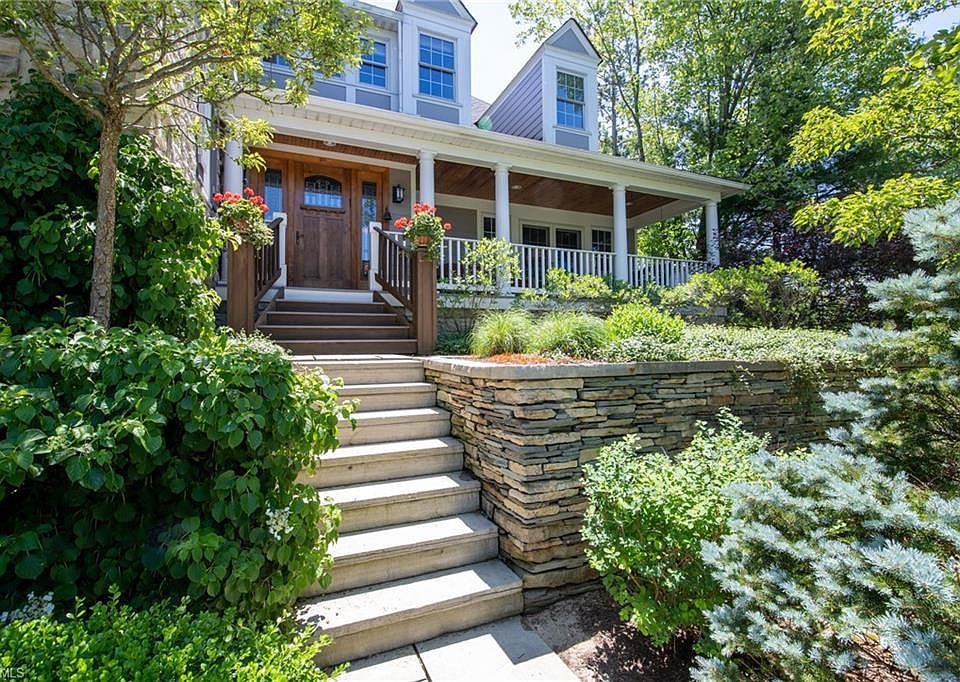 Call listing agent Karen Eagle for showing appointment at 216.352.4700. Five bed, 5 bath transitional home in the Village of Chagrin Falls. Great views from every window! Follow the heated driveway to front steps lined with extensive upscale stone work and enter through front door or spend time on charming front porch. Formal dining room, butler's/serving pantry. Great room with vaulted ceilings, gas or wood burning fireplace and walls of windows. Open concept kitchen with granite, stainless steel appliances, two walk in pantries, and a cozy breakfast room that overlooks the lush backyard and patio. First floor owner's wing leads to spacious and comfortable home office with gas fireplace and coffered ceiling. Follow the hall to a large bedroom, huge walk-in closet, and a glamour master bath with large shower and jetted tub. Second floor includes a common play/study/rec area, two bedrooms with a jack n' jill bath, and a third bedroom with a full bath. Each bedroom has large walk-in closets. Expansive lower level rec room with high ceilings, full wet bar equipped with a microwave, dishwasher, and a fridge. A fifth bedroom and full bath are also included in the lower level. Lower level has additional private access from garage and catering room. Spectacularly landscaped yard with an entertaining paradise on the back patio! Tandem garage allows for 2-4 cars, depending on size. Low maintenance, easy lifestyle home. Walk to town, school, restaurants, and shopping! Excellent school system. Do not miss this opportunity!