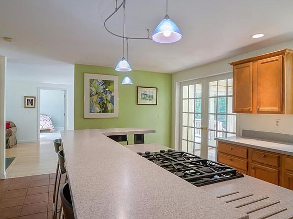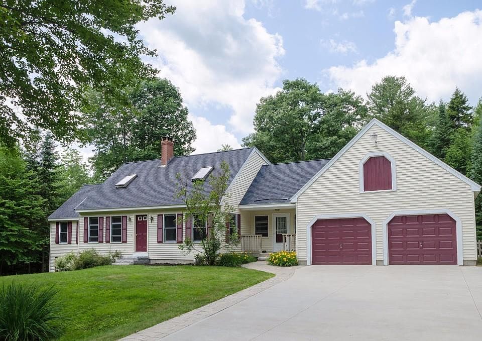 Spacious Cape in move-in condition. Updated kitchen w/newer Corian counters, SS appliances & a large island. Dining room w/slider to multi-level deck is open to living room w/wood stove. Four-season sun room w/skylights & newly refinished hardwood floor. First floor master suite including bedroom w/cathedral ceiling & bath w/new tile floor, vanity & top. Two large bedrooms upstairs. Potential for additional finished space over garage and in walk-out daylight basement. Beautiful, private & convenient location.