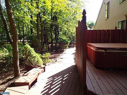 You won't miss this house as you look for the stone and brick wall surrounding the property on the corner of this large lot. Three tiered decks for entertainment wraps around the side and back of property. Enter into the large 2 story foyer to living room and formal dining room. Upgraded gourmet kitchen with granite counters flat stove top and double ovens are all stainless steel. The 1st floor accented with oak wood floors, two story brick fireplace and den off of 2 car garage. Master bedroom with oversized tub double shower heads and balcony off of slider doors. Two additional bedrooms and full bathroom, wall to wall mirrors, third level bedroom included full bathroom. Great property in Voorhees school district. This home includes a (1) one year home warranty. TENANT OCCUPIED until 8/2014.