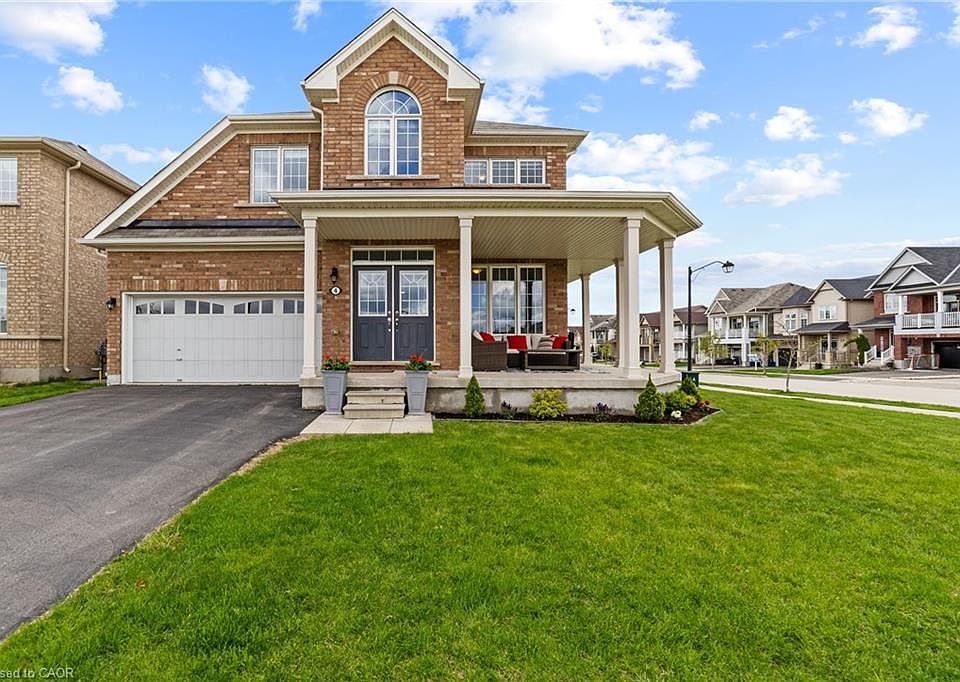 Welcome to this beautifully maintained and charming 4 bedroom, 3 bathroom home, ideally located on a spacious corner lot with a classic wrap-around porch, perfect for enjoying your morning coffee or relaxing evenings. From the moment you arrive, the striking double front door entry sets the tone for the warm and inviting interior. Step inside to discover a bright, open concept main floor, neutrally painted throughout and designed for modern family living. Stylish laminate flooring flows seamlessly across the main level, where you'll find a versatile dining room that can serve as a secondary family room or play area, and features a dedicated office, ideal for working from home or managing busy schedules. The heart of the home is the sleek, contemporary kitchen, featuring gorgeous recently installed quartz countertops (Feb 2025), a walk-in pantry, and a built-in coffee nook. Large sliding glass doors off the kitchen lead to a spacious, unspoiled backyard, a blank canvas with endless potential for outdoor entertaining or gardening. Interior access off the kitchen to a two-car garage adds everyday convenience. Upstairs, you'll find plush, newly installed carpeting (April 2025) and four generously sized bedrooms, offering comfort and privacy for the whole family. Master bedroom is spacious and features two walk-in closets and an abundantly sized ensuite with soaker tub, double sinks, separate shower. Located close to schools, parks, and shopping, this home combines comfort, functionality, and location, all in one beautiful package. Over 1200+ sq.ft of unfinished basement. Don't miss your chance to own this exceptional family home in one of the area's most sought-after communities!