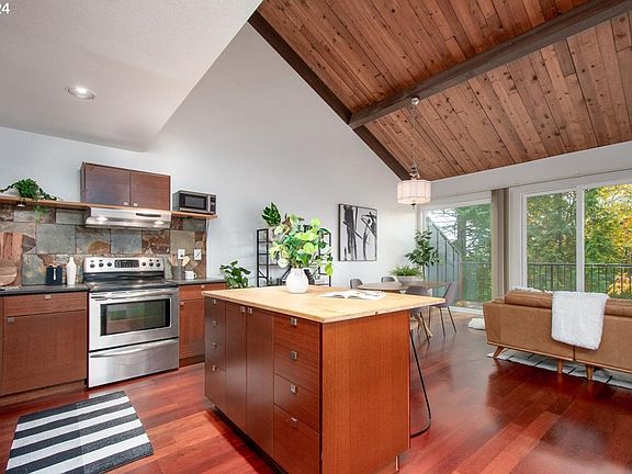 Mid-century modern vibes meet a Pacific Northwest aesthetic in this condo with a treehouse view. An open floor plan and vaulted ceilings create a spacious feel. A wall of windows fills the great room with natural light. The gorgeous wood ceilings, loft bedroom suite, and private deck make you believe you’re waking up in a secluded cabin. Additional bedroom on main level. New upgrades completed in 2024 include new siding, outdoor stairways, windows, and deck. Washer/dryer in unit, parking space included, and on-site pool open in the summer. The Tanglewood Hills Condos are surrounded by 200+ acres of common area greenspace, parks, and off-road nature trails, not to mention the exceptional dining opportunities of Lake Oswego. A neighborhood clubhouse offers Mountain Park residents a large community pool, hot tub, gym, athletic courts, and fitness classes. This is a rare economical way to live in one of the most desirable communities in the Portland Metro Area. No rental cap so this could be a great opportunity for an investor, and this complex is FHA approved!