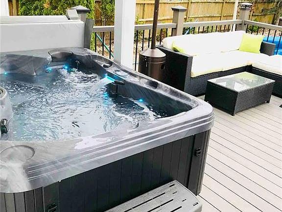 Newly renovated cape in Morris Cove area. Kitchen features stainless steel appliances, double sink, island, and custom counters & cabinetry. Formal living room/dining room combo with an open floor plan and hardwood floors. Sliders off living room lead to private deck with hot tub. Master bedroom suite located on the upper level and features hardwood floors, electric fireplace, built-in fridge, small reading nook, balcony, and full bath. The master bath has heated floors, double shower, and double sink. 2nd bedroom on upper level with hardwood floors. 3rd bedroom on main level near the kitchen. Huge finished basement features a wet bar with a built-in fridge and sink, full bath with stand up shower, and 4th bedroom/office. Laundry in basement. Inground pool in the fenced in backyard. This home is truly turn-key, and an entertainer's paradise. Custom fixtures throughout.