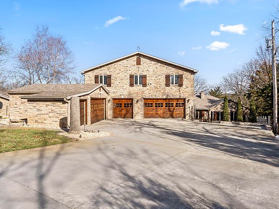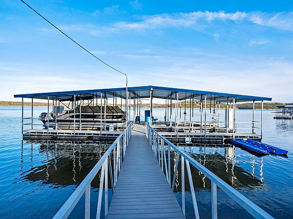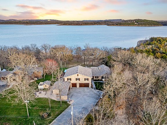 Introducing a one of a kind Lakefront Oasis! Magnificent 7-bedroom home boasting stunning Table Rock Lake views. With a vegetation permit in place, one can easily walk to the water and find your very own dock featuring 4 slips and a swim platform (included in the list price). Enjoy relaxing or exercising in the 15' endless pool or cozy movie nights in the dedicated movie room. Golf enthusiasts can even practice driving and putting on the 45' private golf green, with additional parking places, then unwind by the fire pit area under the stars. Experience tranquility by the beautifully lit water feature, entertain guests or savor quiet moments on the covered back deck, overlooking the lake. Featuring a 5 car garage with ample parking, which even includes RV electric hook up for added convenience. Almost new roof, water heaters and much more, even a whole house generator! Sellers are including their gas golf cart in the sale for easy exploration of the surroundings, however there are additional personal property items that can be purchased, including Limited Yamaha Jet Skis! Home is being sold furnished as shown. This is more than a home--it's a lifestyle of luxury and leisure. Don't miss out on this rare opportunity to own your own piece of paradise.
