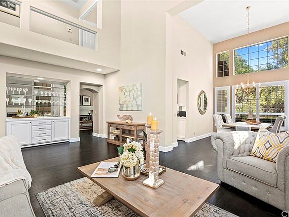 COASTAL UPGRADES, MOVE-IN READY, CUL-DE-SAC STREET, MAIN FLOOR BEDROOM WITH EN-SUITE BATH, OPEN FLOOR PLAN, 4 BEDROOMS PLUS A LOFT, LIGHT AND BRIGHT INTERIOR AND LOW HOA! Exceptionally secluded location with only 5 homes on the street. This home is meticulously maintained and upgraded with newer interior paint, neutral colors, lots of windows, high vaulted ceilings, plantation shutters, upgraded hardwood flooring throughout the main floor, high-end porcelain tile in all bathrooms, recessed lighting, and raised baseboards. Kitchen completely remodeled in 2018 with new quartz countertops, full backsplash, refinished cabinets, upgraded hardware, new KitchenAid refrigerator INCLUDED, new sink, new microwave, newer dishwasher, lots of counter space and cabinets and a large nook overlooking a serene backyard setting. Kitchen is also open to extensive great room with fireplace and French doors to large flat backyard, perfect for entertainment. Formal living room and dining room with a wet bar and a fireplace that complete the setting. Large master suite with walk in closet and upgraded fireplace. Master bathroom with his and her sink, walk-in shower and a seperate tub. Situated off the master are 2 large bedrooms and a loft. Main floor bedroom with en-suite bath could serve as a DUAL MASTER. Interior laundry, washer and dryer INCLUDED. Access to Marina Hills resort style amenities including Olympic size pool and spa, tennis courts, sport courts, tot lots, clubhouse and beach trails.