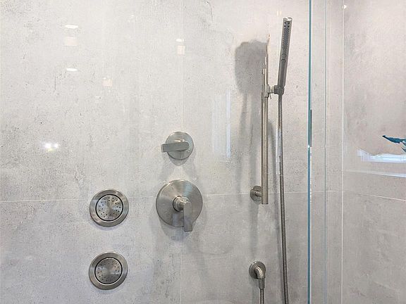 Newer modern bathroom with large tile shower. Washer, dryer stays. Mini split AC units and separate propane heating unit. Plus hot water on demand system.
