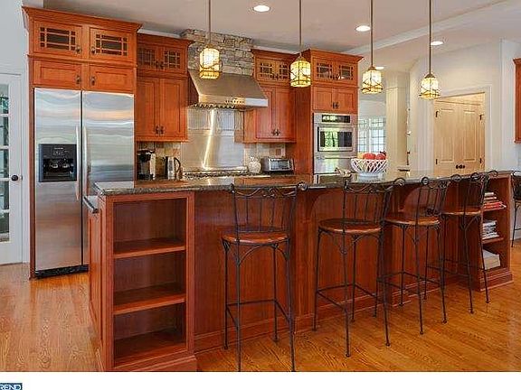 Set in a private enclave of 5 Zaveta custom homes in Doylestown borough this Normandy style boro gem reflects the highest quality craftsmanship and stately design. From the ground up this home has had inescapable attention to detail and bolstered construction. Every room has been designed with purpose and devotion. The front elevation projects strength and sophistication and the interior floor plan is a symphony of rooms in perfect fidelity. The kitchen and family room collaborate to create a harmonious space that is anchored by a stone wrapped fire place, a long granite island and French doors that open to one of two elevated decks. In the center of the home is the resplendent two story library worthy of the most demanding academic and spacious enough for a family forum. The truly bold two story Cherry stained oak fireplace is complimented by a spiral staircase that leads to a balcony that commands a view of the room and is wrapped in custom built-in book shelves with additional private reading room. The first floor master has a walk-in closet and additional custom built-in storage, a grand and sumptuous master bath that captures the spirit of 20th century art deco design. There is also a private courtyard off the master bedroom for early morning tea or reflecting with a book in the sun. The 2nd floor has 4 additional generous bedrooms, a large Den over garage and 3 full bathrooms. There is a laundry room on the 1st and 2nd floor. The finished walk out lower level has a private daylight office, gym with full bath and walk in shower, Billiard room, wine cellar and entertainment room. Just outside is an E.P. Henry paver patio. There are details upon details to take in. Schedule a private tour of the finest the boro has to offer.