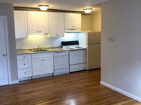 First floor newly renovated 1 bedroom apartment available Sept 1st. Beautifully updated white kitchen with new cabinets, counter tops, and appliances. Large living/kitchen area and nice sized bedroom with hardwood flooring. Perfect commuter location, a short walk to the Cedar Park commuter rail. One covered parking spot and in-building coin operated laundry. Heat and hot water included. Additional storage space in the basement. No smoking and no pets. Excellent credit score required.