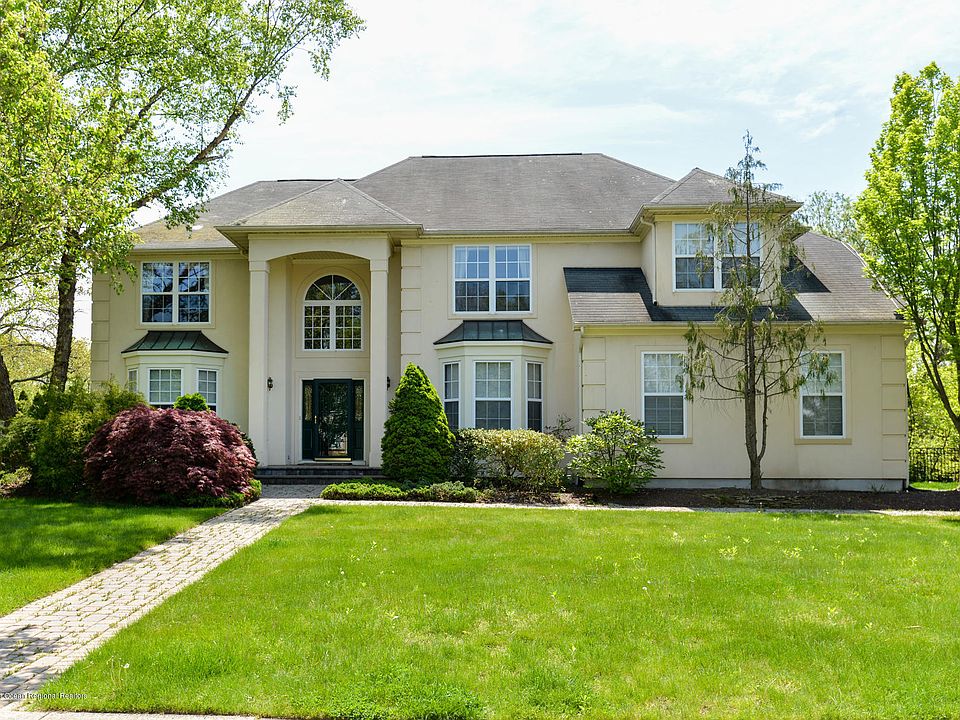 Entertainers Delight! 4/5 bedroom, 3 full bath Exton model colonial on .68 acre lot in Ardena Acres boasts entertainers kitchen with over-sized eating area, 2-story family room with wood burning fireplace & secondary staircase, office with oversized doors & closet, formal living & dining rooms. 2nd level boasts real oak wood flooring throughout too and 4 bedrooms & 2 full baths including oversized master bedroom with vaulted ceiling, walk-in closet w/closet system & large master bath with jetted tub & separate shower. Other features of this grand home include 2-car garage, finished basement with built-ins, extensive 2-level paver patio and in-ground pool. Residents of Ardena Acres enjoy a great neighborhood, nearby Ardena Elementary School and Colts Neck High School. New roof Oct 2018.