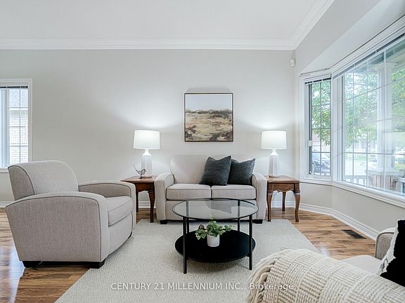 Live in the prestigious gated community of Rosedale Village. 4 Tuscany lane offers an unbeatable blend of comfort, style, and convenience. This semi-detached home is only connected by the garage, giving you all the privacy of a detached. Stepping inside you'll immediately notice the vaulted ceilings, and transom window over the front door creating a bright entryway. The front living room boasts a beautiful bay window looking out at the picturesque street, the living & dining rooms feature elegant crown mouldings and hardwood floors. The bright kitchen has vaulted ceilings highlighted by the large transom window over the patio doors. The cabinets are freshly painted with new hardware. Plus tons of pantry space. Use the eat-in kitchen for dining or an additional sitting room. Enjoy your private patio in the backyard, which is ideal for morning coffees or evening dinners. The large primary suite includes a 4 piece bathroom, and a walk-in closet. This room is very spacious and can easily accommodate a king-size bed. The finished basement provides a guest room, full bathroom with a jacuzzi tub, a workshop and a spacious area for entertainment or relaxation. Rosedale Village offers resort-style living with access to a 9-hole golf course, a clubhouse with an indoor pool, tennis courts, walking trails, and much more. Its the perfect place to embrace an active lifestyle within a close-knit community. Never worry about snow shovelling or mowing the lawn again, in Rosedale that is taken care of for you, leaving you time for things you love to do. Make this beautiful home yours!