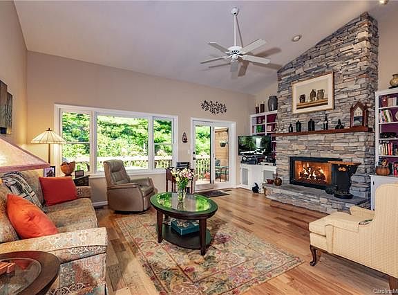 Must see Qualla Village townhouse in Connestee Falls. Bright open floor plan with main level living that is move-in ready. Low maintenance pack-and-go retreat to maximize your relaxation and fun time! Breathe in the pure mountain air and listen to the natural stream that flows right below. Stacked stone gas fireplace with custom bookcases, in a freshly painted setting. Main areas have been updated in 2018 with Bruce hardwood floors, new stove, microwave and disposal! Lower level is a great hang out or private guest retreat, complete with a wet bar, mini fridge, and picture window/seat that overlooks the stream. Custom up/down blinds in the bedrooms, den and hall.See attached upgrade sheet.Qualla Village has its OWN dock and launch ramp, with rack rentals available, and donated canoes and oars! Lake access, hiking trails, golf, pickleball, clubhouse and so much more, this won't last!Buyer pays $10k one time amenity fee, 8K if paid at close or within 30 days of.
