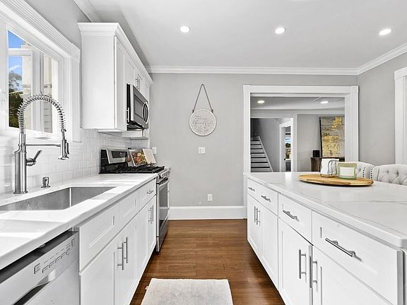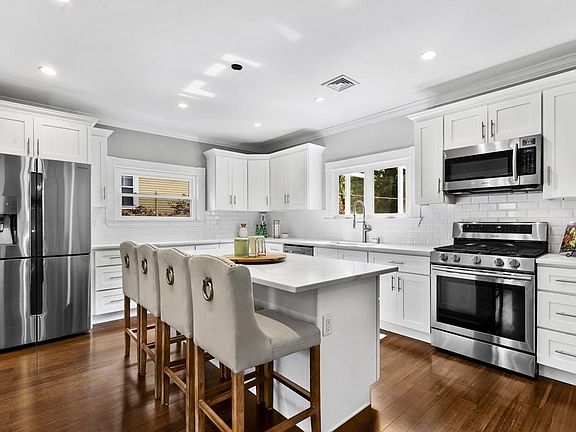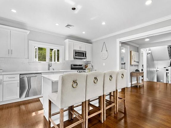Architecturally stunning piece of real estate in the center of Melville Park Neighborhood! Stately center entrance period Colonial Has been upgraded over the years to create a jaw dropping set up. Owners unit has 4 bedrooms spread up between 2 floors. Large open concept Living are with Renovated kitchen with beautiful center island. large living room with separate office nook. Two generous bedrooms on the main living level and on the top floor you will find two additional bedrooms and a small living area A 3/4 bath completes the floor making this suitable for a large array of buyers. The other unit is perfect for a rental as the finishes and stunning gourmet kitchen with a high end appliance package seldom seen in a rental will blow every tenant away! The rooms have incredible dimensions and could make a top notch Income Unit, IN-LAW or Au Pair Apartment. The grounds around the Home with leave you feeling that this property is truly one of kind!