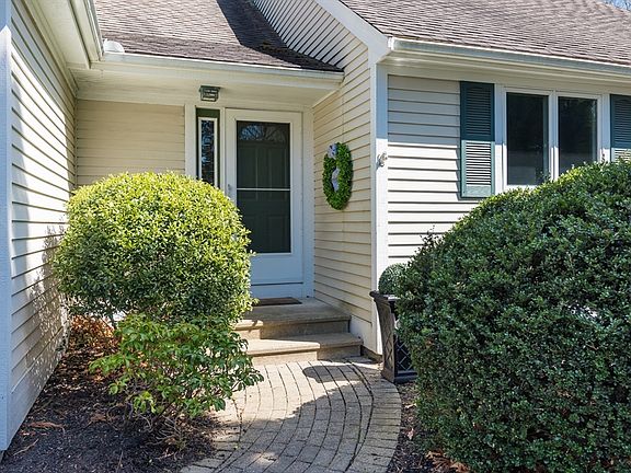 Welcome to this desirable Provincetown style duplex at Southport! Situated on a peaceful cul-de-sac, this meticulously maintained home offers one-level living. Recent upgrades include new flooring, paint, furnace, AC, hot water heater, and stainless steel appliances. The spacious living area features a cathedral ceiling and gas fireplace. The kitchen offers ample storage. The primary suite boasts a cathedral ceiling and walk-in closet. Enjoy the serene sunroom with oversized skylight and explore amenities like golf, tennis, pools, and walking trails in Southport's premier 55+ community.