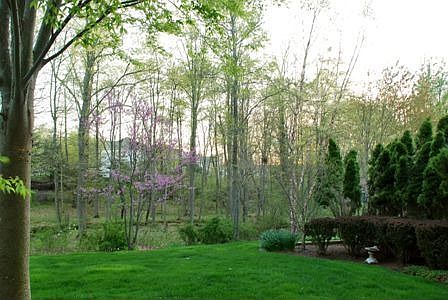 A Secret Garden awaits you! Desirable Verdi model floor plan includes a first floor master, formal living and dining, plus a family room open to the kitchen. The kitchen has a roomy center island, Corian counters and built-ins with a wealth of storage and counter space. You~~~ll love the adjacent breakfast room with vaulted natural wood ceiling, windows on all sides, and sliders to a deck overlooking the amazing wooded landscape. Master bedroom has a lighted trey ceiling and walk-in closet; master bath with corner soaking tub. Two bedrooms, a full bath, loft space and walk-in cedar closet upstairs. There is a finished walk-out basement that leads to one of this home~~~s most treasured features: a garden retreat like no other that backs to woods and offers breathtaking scenery year-round. Other features include hardwood floors in the dining, kitchen and family rooms, recessed lights, marble surround gas fireplace, and tinted back windows.New York AC/Furnace 2010.Hot water heater & refrigerator 2012.
