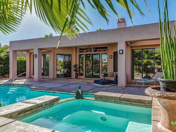 CONTEMPORARY #3,076 4 Bedroom, 4 bath contemporary desert home is located in the highly desirable Mission Haciendas Enclave of Mission Hills Country Club. Perfectly positioned on 1 of 3 sprawling championship courses. A private manicured courtyard, massively gated entrance and tower portico create a dramatic first impression which is grand in scale, luxe in style and designed to make a statement. An impressive open-concept floor plan provides the perfect setting for entertaining. Three bedrooms, plus an office/den, and four baths create an abundance of space for guests. The master suite is complete with two walk-in closets, a fireplace, an ensuite with spa/bath and direct access to the lavish pool and spa. The gourmet kitchen and breakfast bar are an entertainers dream come true! Custom built plantation shutters throughout home. An impressively oversized casita. SELLER FINANCING AVAILABLE w/conditions