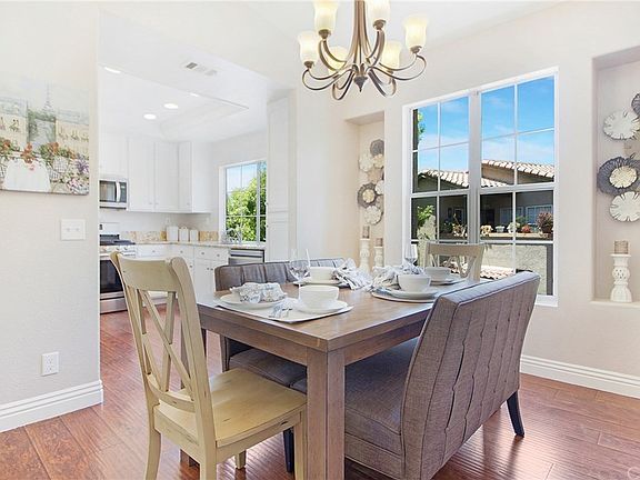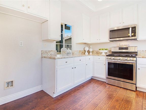 CALL CINDY BISTANY FOR PRIVATE SHOWING: Absolutely gorgeous end unit with huge front porch and balcony off the master. This home has been recently renovated and upgraded with beautiful wood flooring, Custom baseboards, vaulted ceilings, panel doors and custom fireplace. Gourmet kitchen with newer appliances and granite counters that opens to formal dining room. Spacious bedrooms and the master suite with vaulted ceilings has a private bathroom attached with walk in shower. Both bathrooms have granite counters and newer vanities. Indoor laundry with front load washer/dryer which is included. Great location which is private and looks out to tot lot. Property is located over garages and this home includes a garage as well. This is the prime location in the tract and the HOA includes Pool, Spa, fitness gym and tot lot. Living in Rancho Santa Margarita offers you membership to the Lake, Beach Club, Lagoon, numerous parks and pools, skate park, dog park, lighted tennis courts and sports courts. A fun place to live, close to Tijeras Creek Golf Course, Hiking and biking trails, Toll Roads and shopping and restaurants. Blue Ribbon Schools! Move in condition. Perfect investment or first time buyer home!