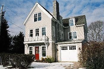 GUILFORD Sachem Head area. Vineyard Point Waterview Nantucket Shingle Style Farmhouse. Architecturally designed - built 2008 with the finest materials. 2915 SF, 4 bedrooms, 5.5 baths. on .30 acres. Features: Entrance Foyer w/formal Powder Rm, Living Room w/fplc and built-in book shelves. Dining room, Chefs gourmet kit with beautiful views and stone counter tops, custom cabinets and French doors to Covered Porch, Laundry. 2nd floor MBR suite w/dressing rm. 1 guest BR w/fireplace and in suite bath,Sitting Room w/Wet Bar and French doors to Covered Porch. 3rd floor 2 guest bedrooms each with built-ins, 2 full baths, large open Family Room w/window seats. Views from every room. Hydro Air Heating and Cooling System with 3 zone thermostats. Partial basement-plenty of storage. Attached one car garage. Outdoor fireplace Steps to private beach. Ideal for swimming, kayaking and long walks in a great shoreline community. Includes 10% ownership in waterfront property Great opportunity for those seeking new construction in a great waterfront community.