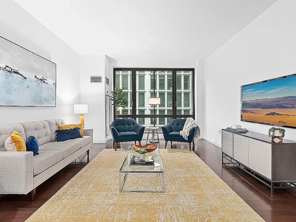 Available May 15! Massive mint condition two bedroom, two and a half bath, with condo rules and a twenty-four hour doorman located in the heart of Flatiron! Welcome home to this oversized, loft-like space with floor to ceiling windows and beautiful hardwood floors. The open kitchen has integrated stainless steel appliances stone counters and custom cabinets. Enormous south-facing bedrooms have amazing closets and the master has its own five piece ensuite bath. If you've been looking for private laundry, central air, on-site garage and private gym, look no further! Located in the most convenient neighborhood in Manhattan, Nomad, Chelsea, Gramercy, Greenwich Village and some of the best restaurants and shops are right downstairs.
