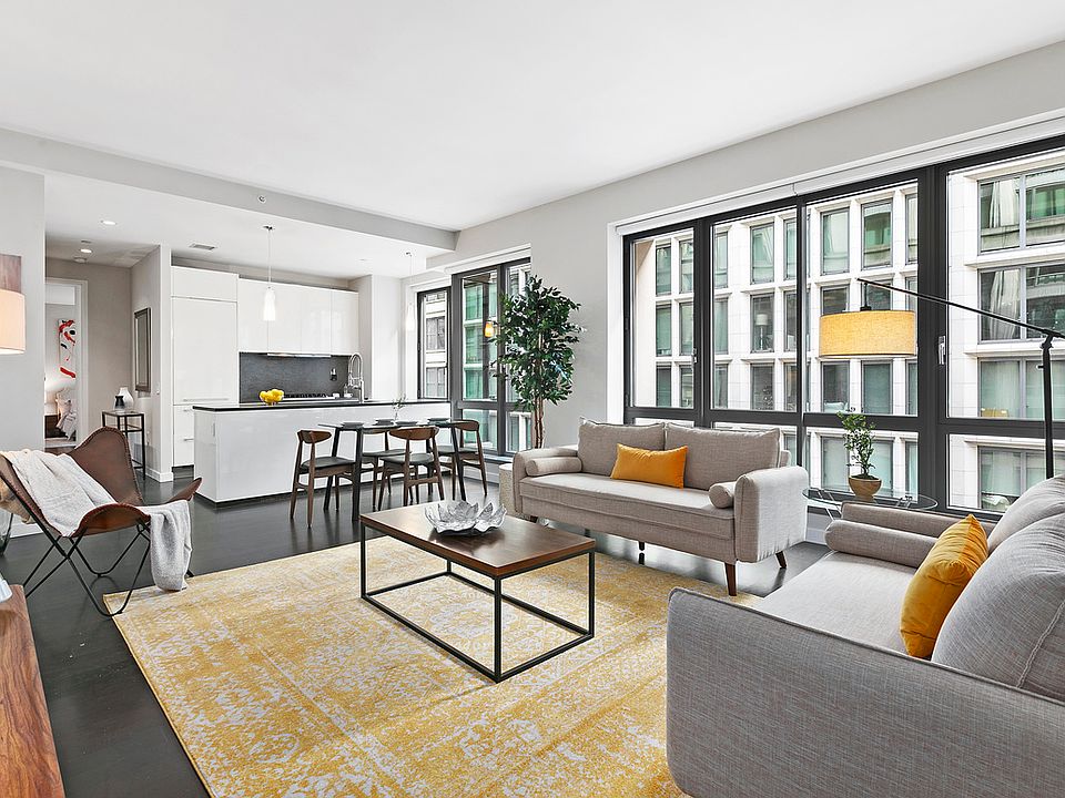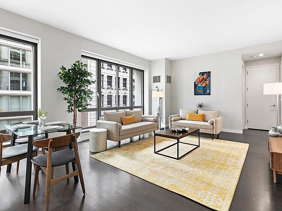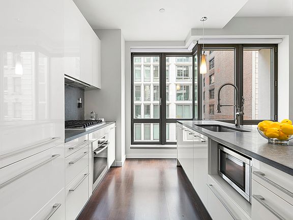 Mint condition two bedroom, two bathroom bathed in light with washer/dryer, full-time doorman and amazing location in the Heart of Flatiron! Enter into a graceful gallery and immediately take in the huge living room with high ceilings, floor to ceiling windows and amazing built-ins! Beautiful wide-plank hardwood floors, central air-conditioning and modern finishes are just some of the luxury features of this home. An beautiful open kitchen with stainless steel integrated appliances, endless custom cabinets, stone counters and a large center island are the perfect setting for your culinary skills. Looking for tremendous closets? We have you covered! 4 West 21st is a modern masterpiece with an impressive roof deck, resident's gym, bike storage and on-site parking. Investors, copurchasing, pied-a-terres and pets are all permitted. Located right off Fifth Avenue, the location is what dreams are made of with Union Square, Chelsea, the High Line, West Village, Midtown and some of the best restaurants, shopping and parks within minutes of your front door.