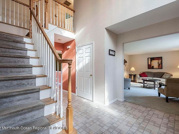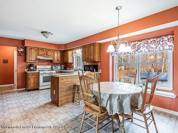 The ideal traditional floor plan concept features a modern interior and comprises a formal dining room, expansive great room and a good-sized living room. Designed for gatherings and casual entertaining, this spacious, eat-in kitchen includes laminate countertops, wooden cabinetry and a floor-to-ceiling pantry. Wake up refreshed in the spacious main bedroom that offers an ensuite bathroom and a walk-in closet. The interior features original tile flooring on the lower level. Enjoy a country atmosphere in the super-private backyard equipped with a large patio and above-ground pool. Simply ideal for year-round entertaining. Reap the benefits of neighborhood living in a sought-after part of Ocean County.
