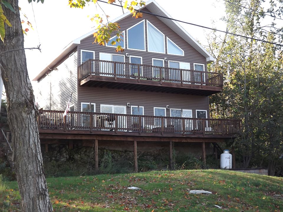 Located on Sylvia lake with breath taking views this 3 bedroom 2.5 bath year round home is five years young. Built in 2009 it features granite counter tops, cathedral ceilings, a front and rear deck, balcony, patio area and private drive. The master bedroom has a master bath and sliding doors that walks out to a balcony. There is a laundry closet, attic storage, are utility room that has plenty room for additional storage. A right away to the water where you can put a dock enough for one boat