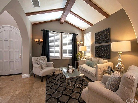 This could be your perfect Ladera Ranch sanctuary. Brookfield-built Spanish charmer settled on a welcoming parcel in Oak Knoll Village- just a stones throw from the beautiful Oak Knoll clubhouse, park & pool complex. Impeccably upgraded & meticulously cared for, this turnkey residence features 4 bedrooms, 3 baths, separate living, family & dining rooms, ground floor guest bedroom, home office & 2nd story BONUS ROOM. Its warmly appealing architecture boasting lightinfused interiors & fine finishes throughout; including travertine stone flooring, custom crafted millwork, furniture grade built-ins, hardwood plantation shutters, arched doorways, integrated audio speakers, closet organizers & recessed lighting. An open-format chefs kitchen offers a full range of premium appliances, morning nook & roomy pantry. Upstairs, the 2nd story landing is host to a built-in study desk, bonus & laundry rooms. The luxurious master suite encompasses a spacious bedroom, spa-like bathroom, entry, his-n-hers walk-in closets & a home office w/custom built-ins. An inviting rear yard features a serpentine sitting wall & paverstone patio- thoughtfully designed for outdoor living. A 2-car garage w/built-in storage completes this picture perfect Oak Knoll Village residence.