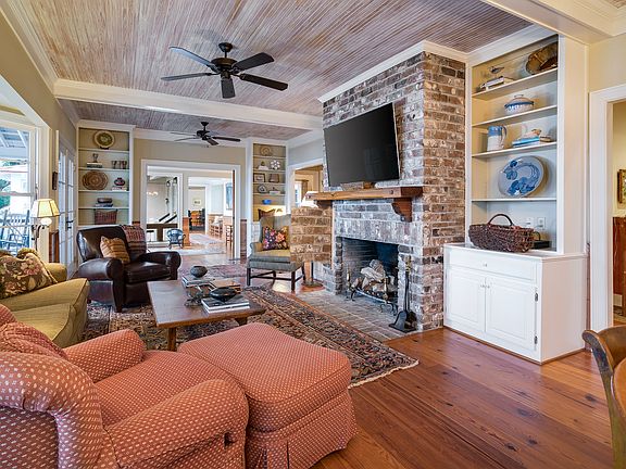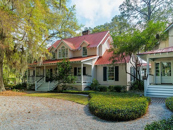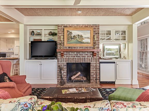 This is a rare opportunity to own “The Tabby Cottage”. The location is perfect – just a walk or short bike ride to the central hub of Spring Island. With the proximity of the River House, Sports Complex, Nature Center, Stables and community docks, members’ of the family can enjoy their day as they please. There are vast array of recreational and leisure opportunities here on the island. This waterfront home has a one bedroom main house that is attached to the four bedroom guest house by a corridor of glass and discreet seating area. With the extensive use of glass windows, the home captures an uninterrupted 150’ view of the marshes. And with an oyster pit in the backyard you will always feel part of the festivities no matter where you are. The house was renovated in 2001 and provides ample entertaining space for any occasion. The main house features a great room with more pickled ceilings, a fireplace, picture windows, and a dining room that has seating for ten. The kitchen has more than enough room to cater for any large gathering and an office completes the downstairs addition. Upstairs the master bedroom takes advantage of the marsh views and has an ensuite bath consisting of a soaking tub, steam shower, double sink vanity, heated towel rack, as well as his and her closets. In the guest home there is a comfortable living room with pickled ceilings, a brick fireplace, large windows, and plenty of built-in bookcases. The quaint kitchen also doubles as a bar. There are four large bedrooms with ensuite baths and a powder room off the living room. Beautiful heart pine and brick floors are found throughout, and pocket doors to maximize flexibility and privacy.