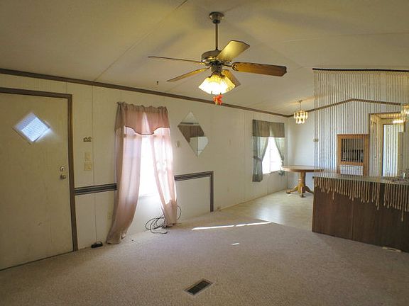 Great Yard for kids and pets! Home has a nice sized Deck on the front and sits on flat property that would be perfect for fencing in. From the Deck you have a great view of the distant Mountains. Home has an eat-in Kitchen. Laundry room is in the hallway leading to the Master Bedroom. Master Bedroom sits on one side of the home with it's own Private Bath. Other side of the Living Room are the other 2 Bedrooms and a Hall Bath. Ceiling Fans throughout the home. Great starter home or rental property. Lets make it yours today, make a offer and we will make it happen.