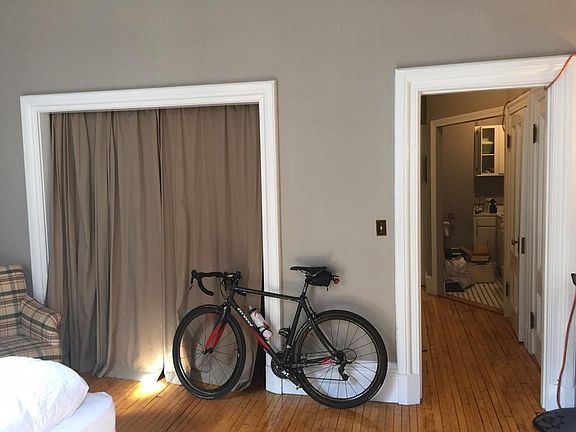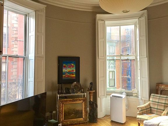 Spacious studio with separate sleeping alcove in elegant Beacon Hill townhouse. Located on the second floor front of the building, the main room of this handsome studio has detail, high ceilings, marble mantel non-working fireplace, tall bay window, and wood floor. Two hall closets and a separate kitchen and bath with shower stall. No Pets. No Students. Common laundry in basement. Steps from the Boston Common.