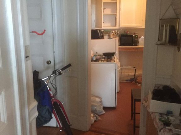 Cozy fourth floor one bedroom apartment in a mid-rise brownstone minutes away from Harvard Sq. Hardwood floors throughout, high ceilings, working fireplace, plenty of windows, heat & hot water is included in the rent. Elevator, grand main staircase, professionally managed building. Coin-op laundry in the basement. Outdoor parking available ($150/mo).
